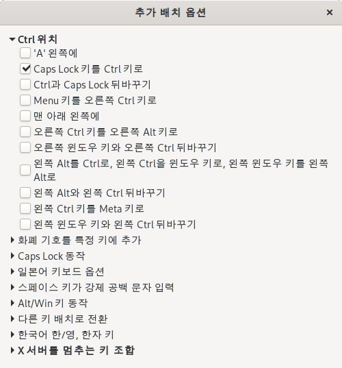Linux를 쓰다보면 caps lock 키를 쓸 일이 별로 없어서 control 키로 변경해서 사용하는 편이다.