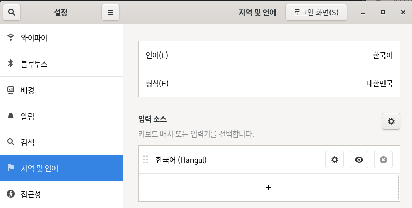 dconf 설정은 key and value 형식으로 되어있는데, 문제가 되는 key만 알면 작업이 편하다. dconf 설정에서 입력기 관련 문제를 일으키는 key부분은 /org/gnome/desktop/input-sources 이다. 이부분을 reset 해버리면 된다. 그런데 input-sources를 reset하면 입력기 설정이 사라지므로, 다시 제어판의 "지역 및 언어 / 입력 소스"에서 "한국어(Hangul)"을 추가해줘야 한다. 제어판에서 ibus hangul 입력 소스를 추가하는 방법에 대해 자세히 써둔 이전 글이 있으니 "여기(리눅스 한글 입력기 설정)"를 참고하자.