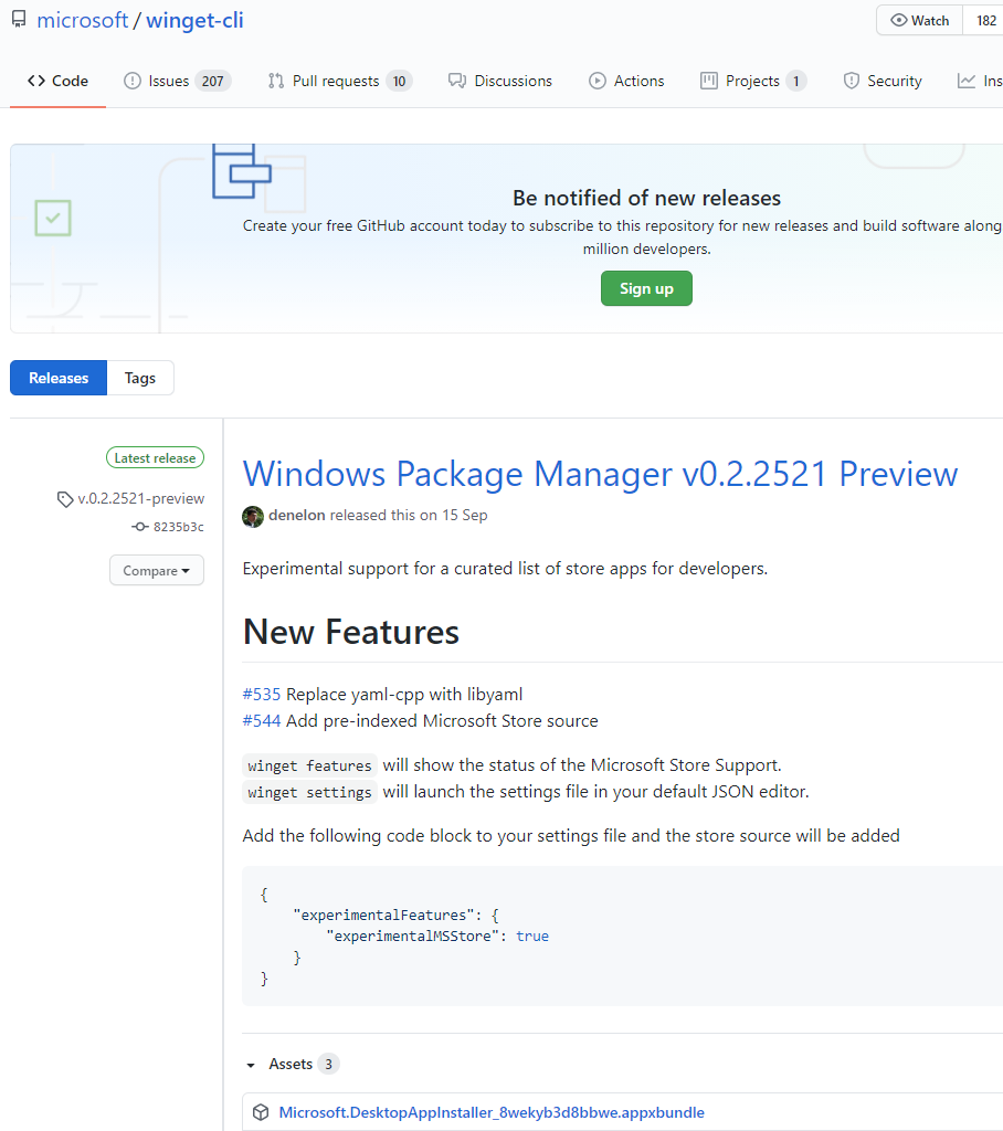설치는 github의 microsoft/winget-cli 에서 다운 받으면 된다. 릴리즈 버전의 다운로드 링크는 아래와 같다.