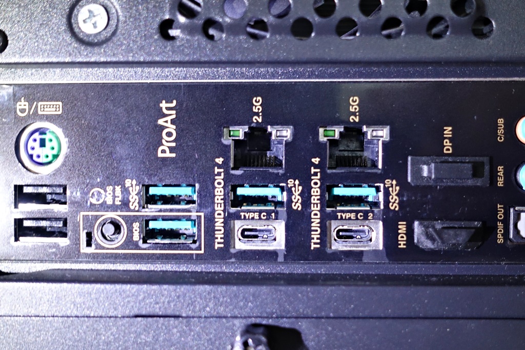 특이하게 USB-A 타입으로 4개, 썬더볼트4에서 USB-C 3.2 Gen2 겸용으로 2개가 제공된다. (따라서 총 6개의 USB 3.2 Gen2가 지원되는 셈이다.)