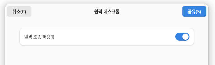 따라서 GNOME 환경에서는 이런 개입을 허용할 것인지 묻는데, 하필이면 용어가 "원격 데스크톱", "원격 조종 허용"이라 외부 다른 사람들과 공유하는 것인가 하고 오해할 수 있다. 하지만 외부와 공유하는게 아니라 프로그램끼리 공유하는 것을 의미한다. 즉 touchegg의 스와이프를 사용하려면 이를 허용해줘야만 한다. 참고로 이 기능은 GNOME에서 제공하는 것으로 xdg-desktop-portal-gnome 이라는 프로그램이다.