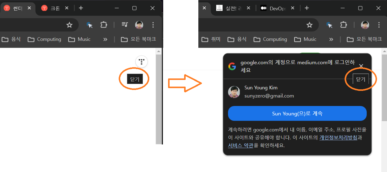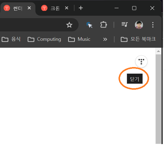 크롬에서 탭 닫은 후 우측 상단에 "닫기" 버튼이 보이는 문제 (버그?) 본문