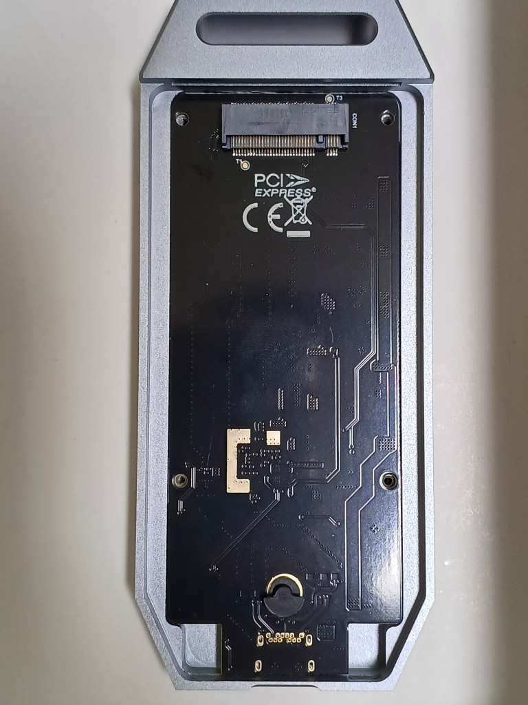 제품 박스에는 본품과 약 15cm 정도의 USB4케이블, 써멀패드, 고무패킹이 있다. 본품을 열때는 딱히 툴이 필요없고, 스프링의 힘으로 고정되는 걸쇠가 2가 있는데, 생각보다 짱짱해서 스스로 풀릴 위험은 없다.