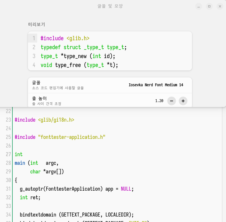 그러면 위에서 언급한 글꼴을 순서대로 그림으로 살펴보면 다음과 같다. 참고로 Gnome builder의 설정 화면에서 캡쳐했다.