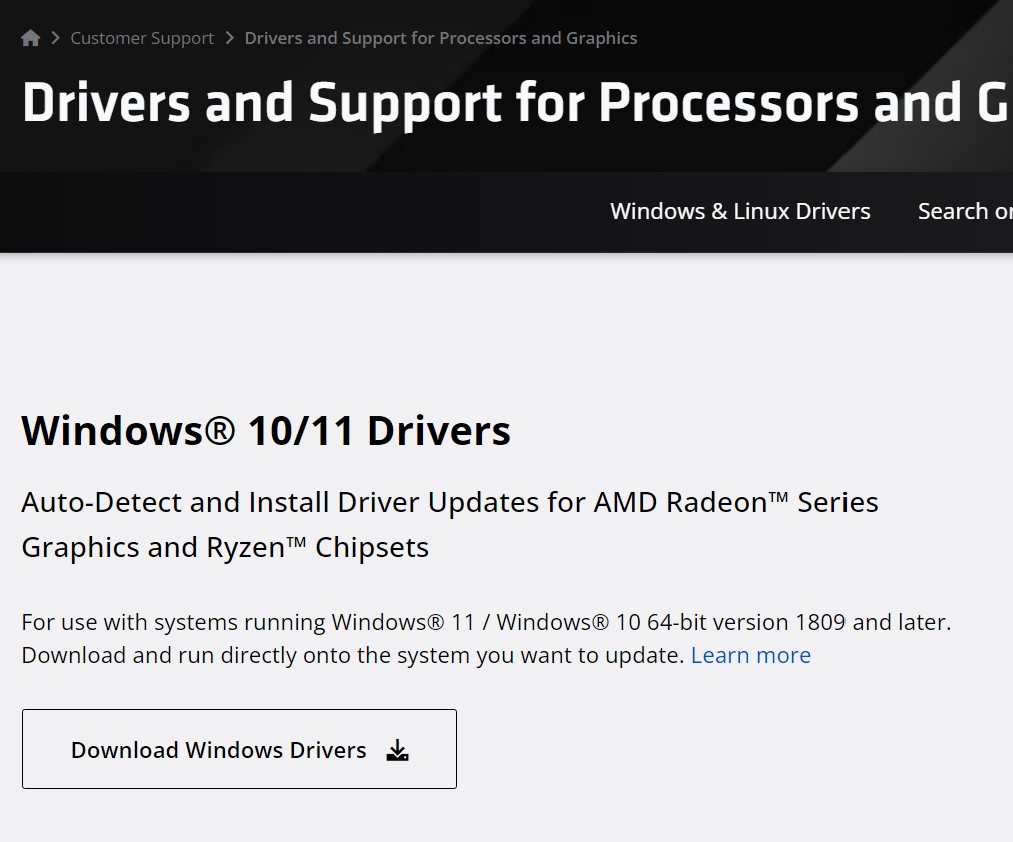 AMD 시스템의 경우에는 아래 링크에서 Radeon 드라이버를 받아서 설치하면 된다. (혹은 AMD 아드레날린 드라이버 패키지를 받아서 설치해도 된다)
