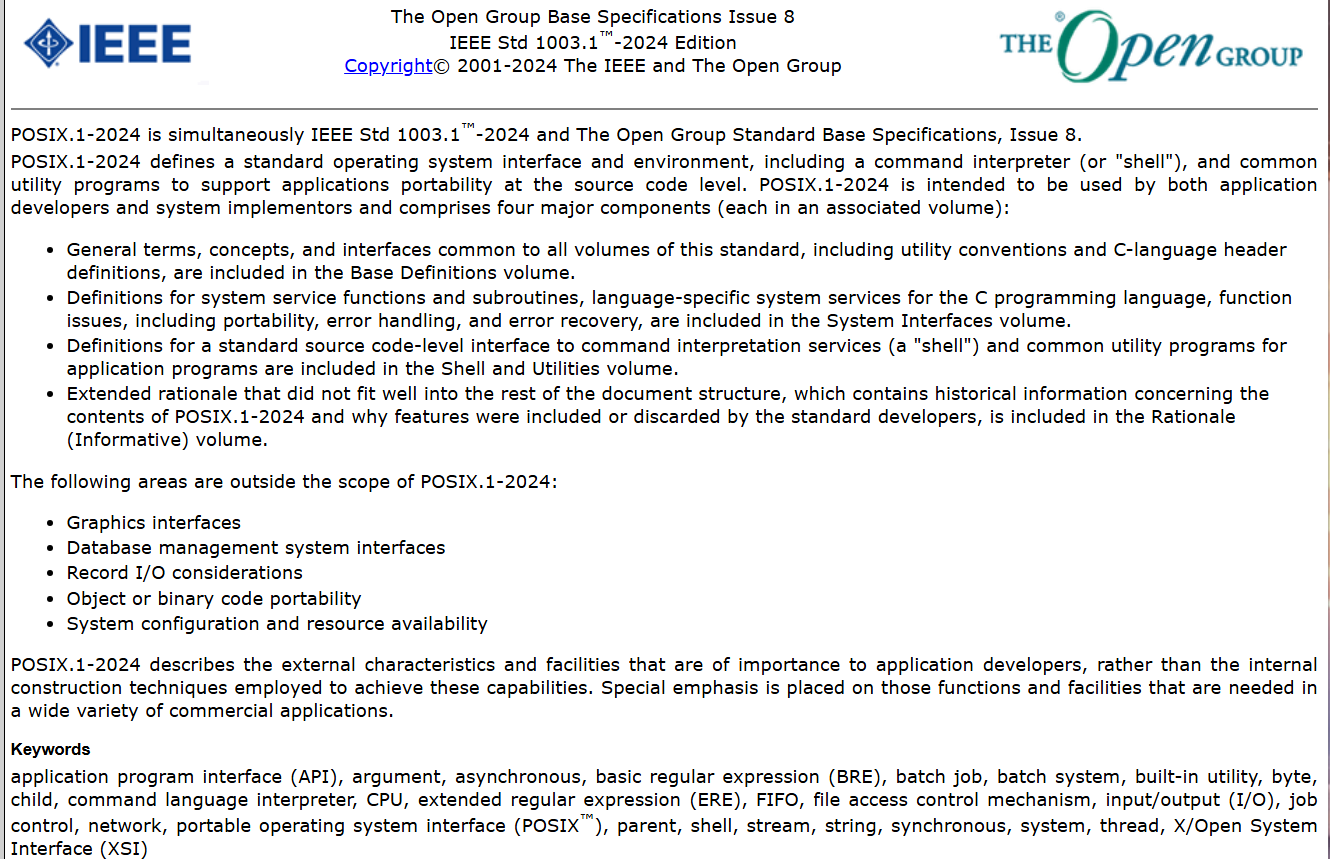 2024년 - IEEE std 1003.1-2024 issue 8 (SUSv5, XPG 8.00, _POSIX_C_SOURCE 202405L)