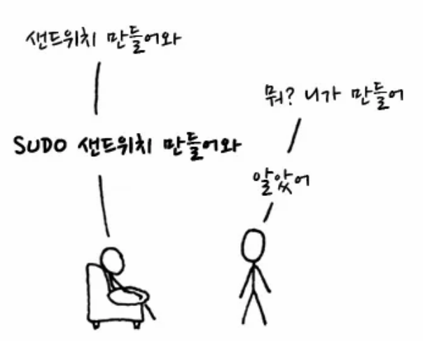 참고로 su는 substitute user의 약자로 유저를 변경한다는 의미이다. sudo는 su에 do(한다)는 의미를 붙인 것이다. 약어는 본래 용어를 알아두면 이해가 빠르기 때문에 모든 용어는 원어를 알아두는 것이 좋다.