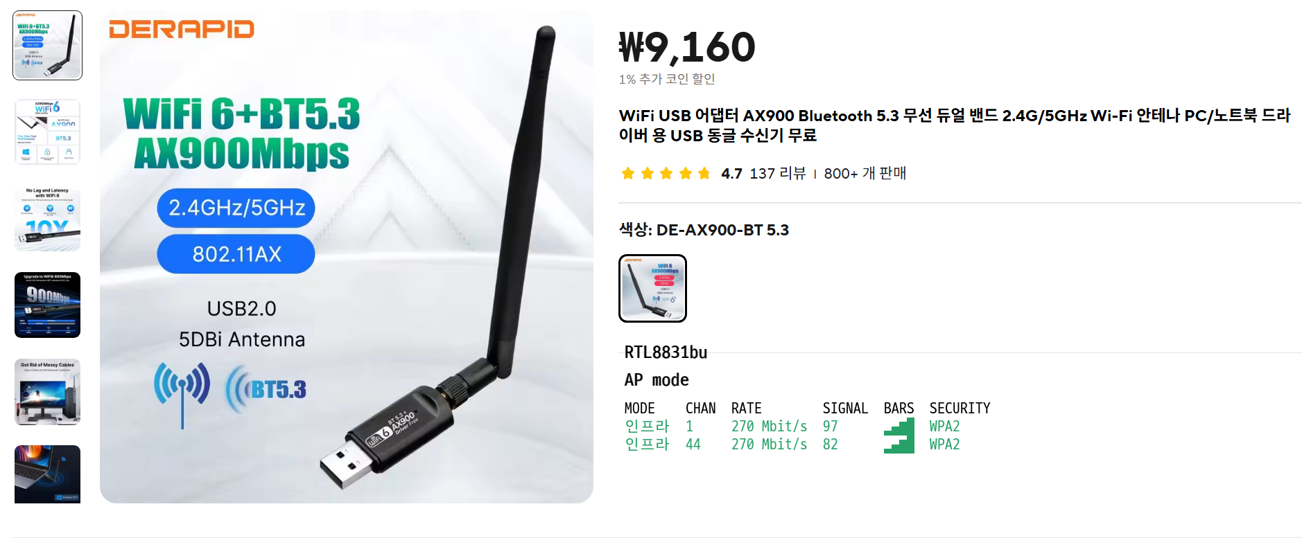 AX900 wifi USB 동글 리뷰 - aliexpress 제품 10종 본문