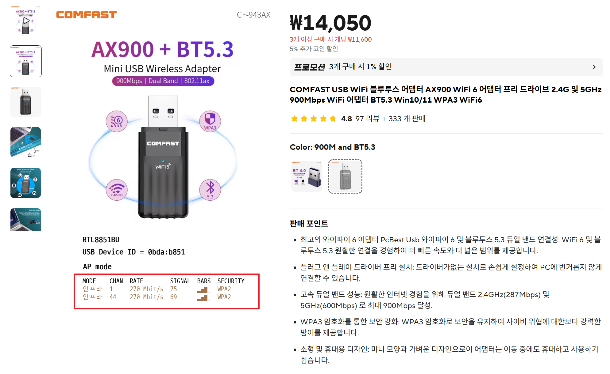 2.2. RTL8851BU - COMFAST 제품 - 별로