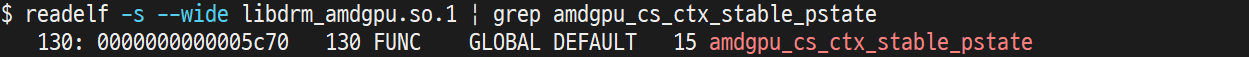 리눅스에는 프로그램의 실행을 추적하기 위해서 strace, ltrace를 제공한다. 이 2가지 툴은 개발자나 관리자에게 거의 필수적으로 배워야 하는 툴이다. strace는 system call tracer이고, ltrace는 library call tracer이다. 여기서는 사용자 라이브러리 함수인 amdgpu_cs_ctx_stable_pstate가 문제이므로 ltrace를 사용한다.